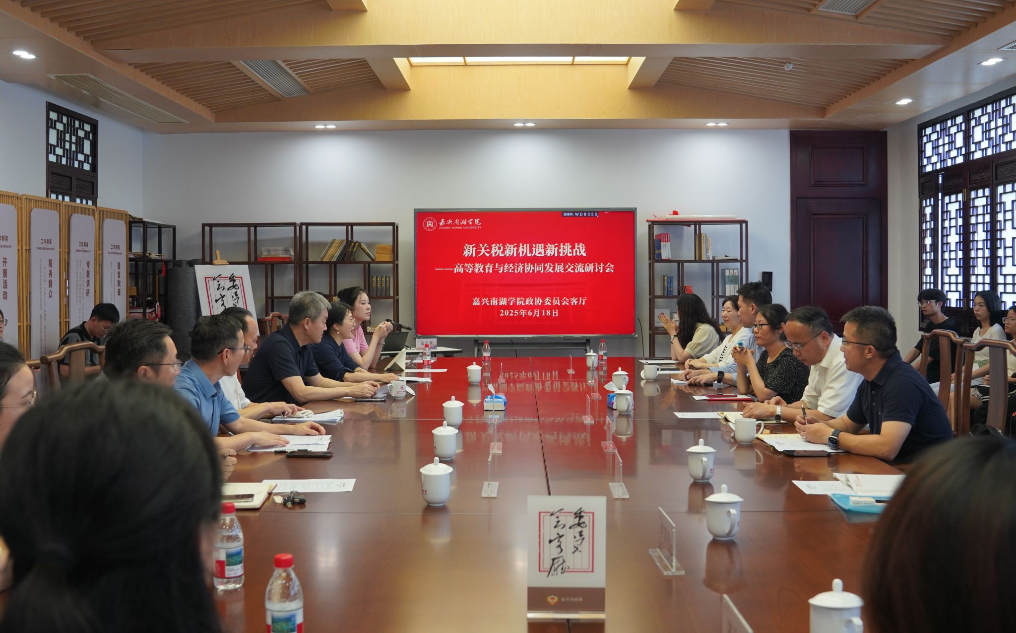 宋志贤作了《新关税对未来经济和高教发展的影响》主题报告,市政协委员、商贸管理学院教授王筱萍、市政协委员、嘉兴汇信进出口有限公司董事长李俊、嘉兴沃兹玩具有限公司总经理助理李臻善结合自己工作背景就当前关税压力下,高等教育与经济如何协同发展进行了分享交流。