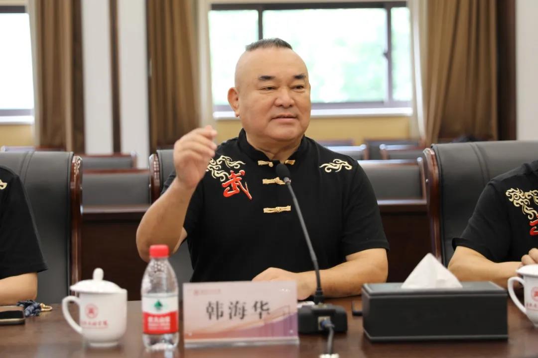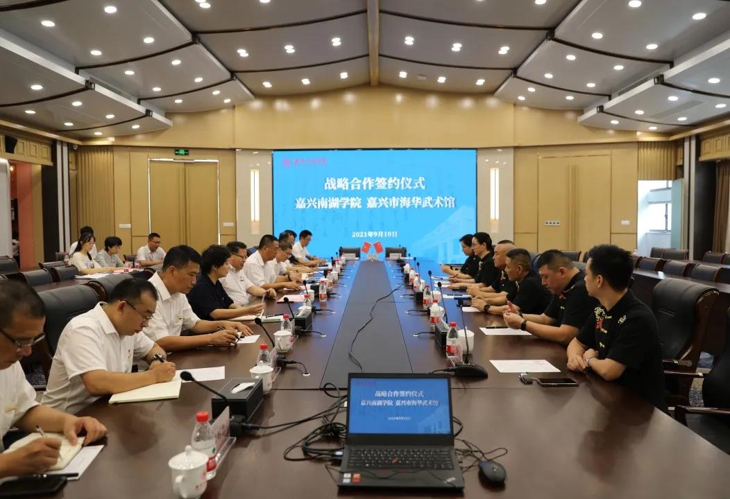 盛付祥介绍了学校的基本情况,并充分肯定了嘉兴市海华武术馆在武术文化的弘扬和发展方面做出的重要贡献。他说,此次与嘉兴市海华武术馆开展战略合作,就是要整合双方优势资源,探索非物质文化遗产保护和传承的新路径、新模式。能够丰富学生的第二课堂,让学生通过本地特色文化认识嘉兴、爱上嘉兴,深化学校与地方交流;通过传统文化的研习,能够提升新时代青年对于延续历史文脉、坚定文化自信、推动文明交流的思想认识和能力素质,为建设社会主义文化强国培育人才,有效践行高校为党育人为国育才的使命。
