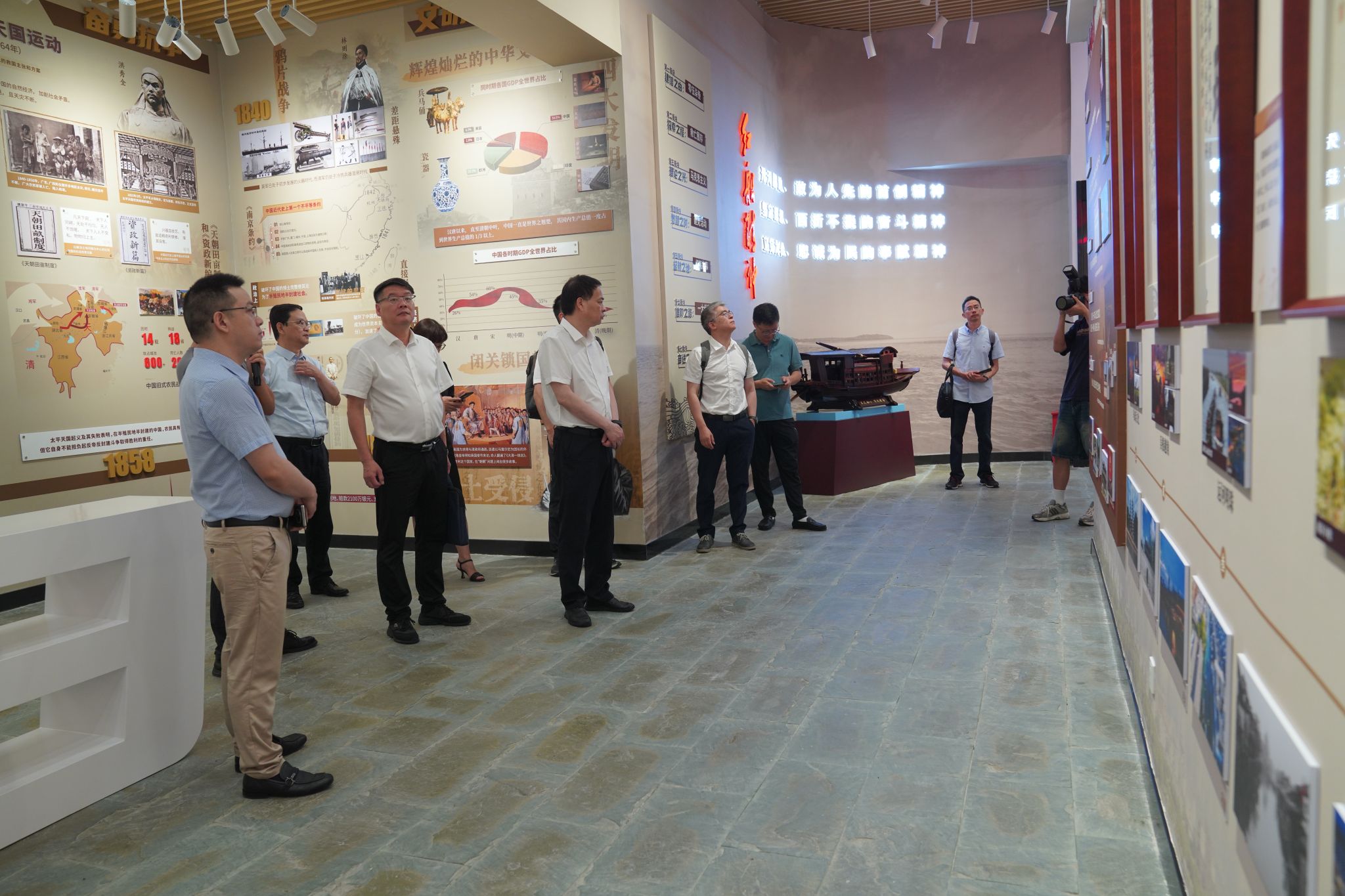 交流座谈会前,贾文胜、沈岱峰陪同陈永光一行参观学校红船精神育人馆等。